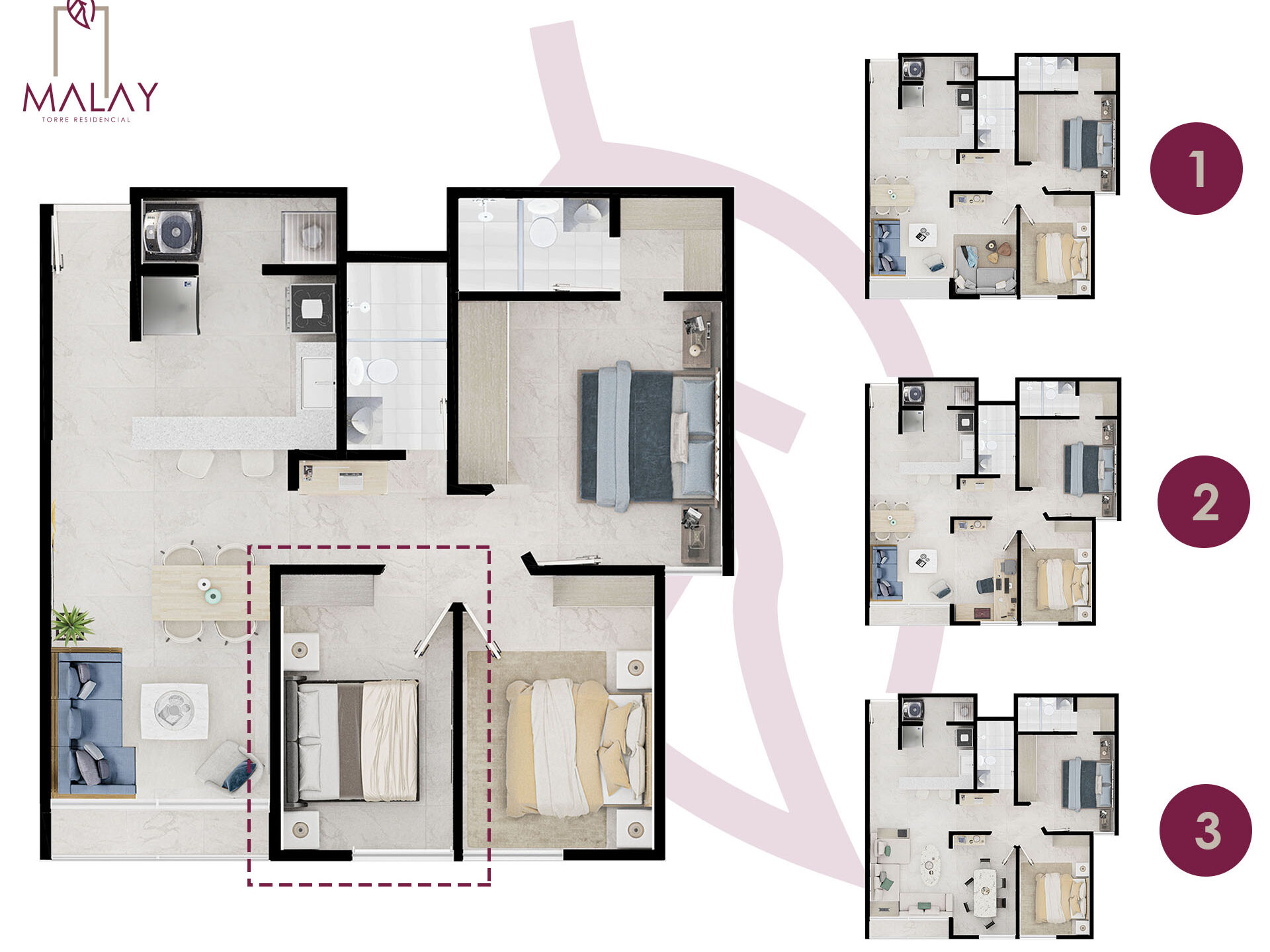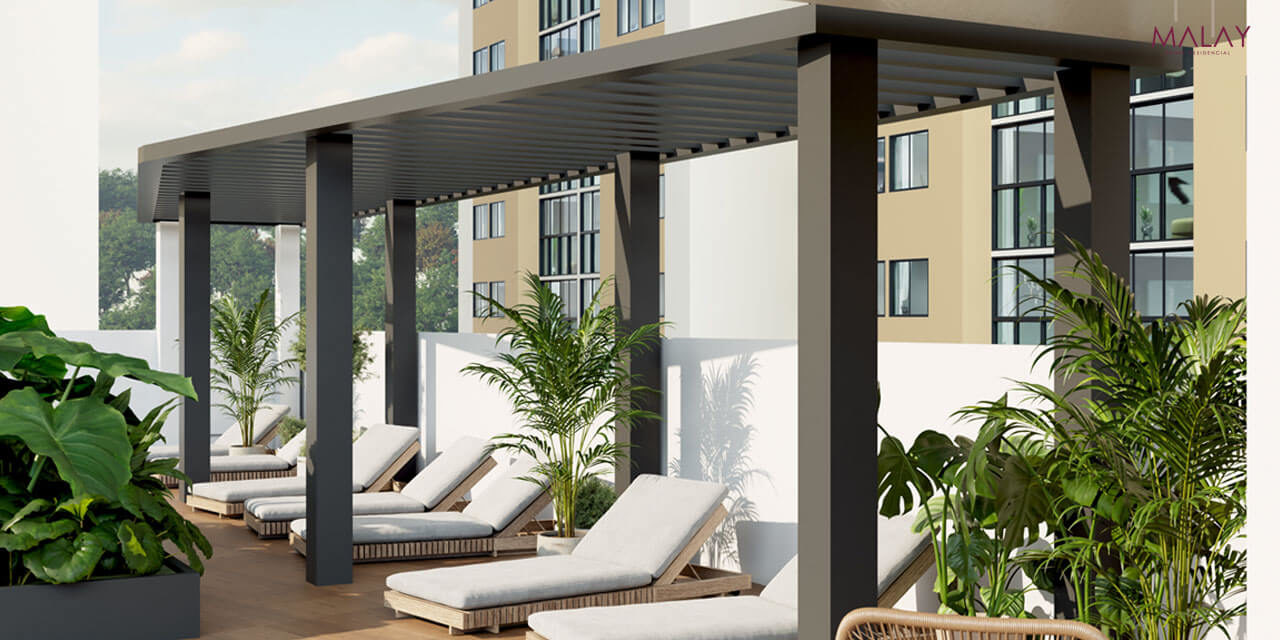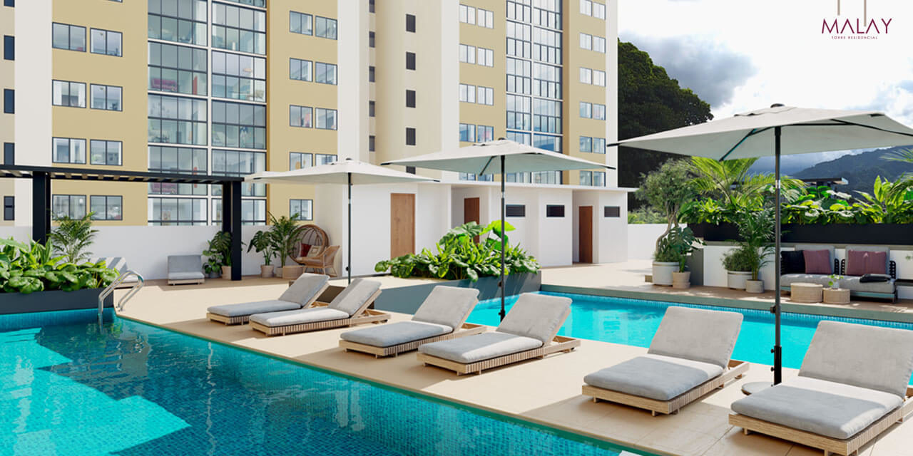 MALAY es un proyecto VIS de apartamentos de 62 metros cuadrados construidos aproximadamente, que ofrece una calidad de vida única en la ciudad por su ubicación, diseño flexible y amenidades como piscina de adultos y niños, salón sociales, zonas verdes, espacios de co working y gimnasio. El proyecto cuenta con 3 torres cada una con ascensor y la zona de parqueadero se encuentra cubierta.